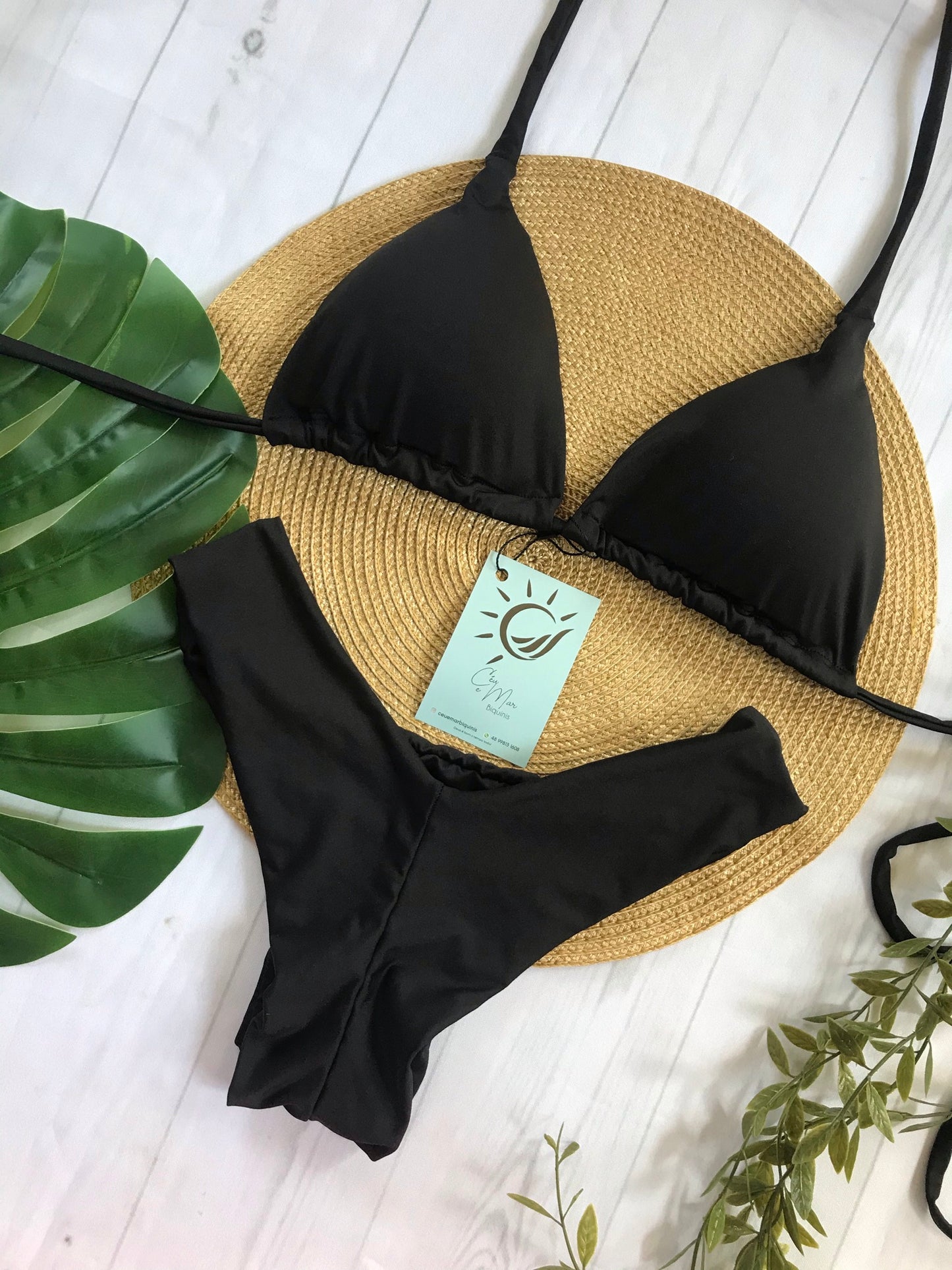 Embrace timeless elegance with the Classic Noir Bikini Set. Handmade in Brazil, this luxury swimwear features a sleek black design with a supportive triangle top and flattering high‑leg bottom. Crafted from quick‑dry, fully lined fabric, it delivers sculpted comfort and inclusive fits. From poolside lounging to evening cocktails, Classic Noir is your go‑to for effortless sophistication.